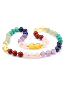 The beloved amber necklaces for kids. Did you know that the amber necklaces are not only very pretty but also have a great function? Amber provides a pain-soothing effect when teeth come through. This is due to the amber acid, which is released by the heat of the skin.