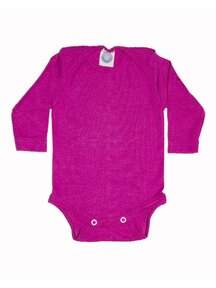 Longsleeve body from Cosilana made of soft organic wool and silk. The fabric is soft and lightweight and helps your baby to regulate temperature. Wool keeps us warm and silk is smooth and soft and gives our skin a feeling of well-being. With envelope shoulders so you can undress your little one from the shoulders down. The romper closes with two press studs.